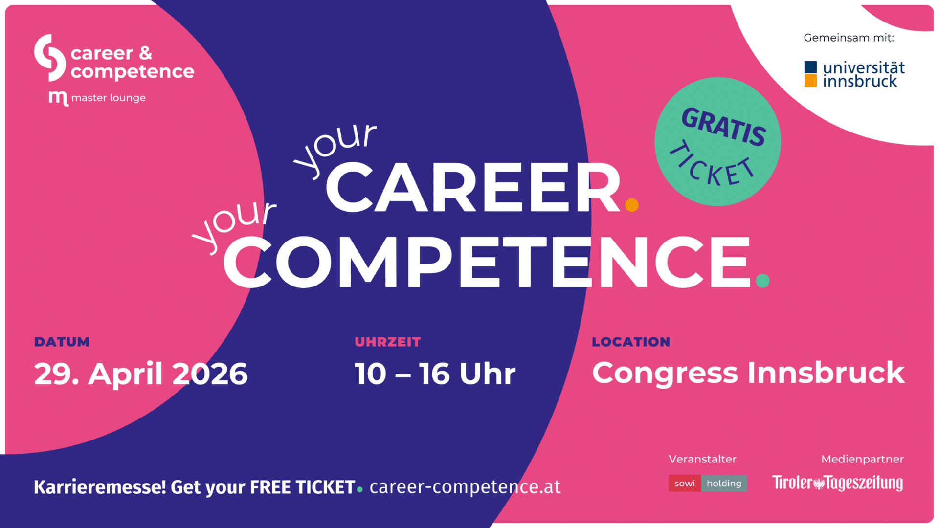 Die career & competence wird von der SoWi-Holding gemeinsam mit der Universität Innsbruck veranstaltet.